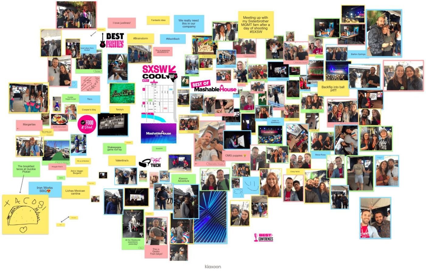 Le Klaxoon Meeting Boards a favorisé la coopération et l’interaction en offrant des idées précieuses pour profiter de l’événement SXSW. Les participants ont pris part à un brainstorming au Mashable House et ont participé à des quiz Time Warp pour gagner l’accès au Mashable House Easter Egg Speakeasy.