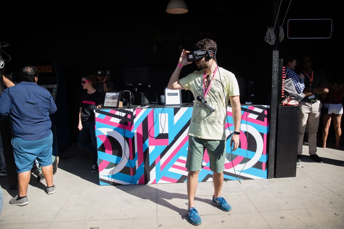 Lorsque les invités étaient transportés vers une autre dimension virtuelle, ils ont découvert la Mashable House VRcade, qui offrait des expériences proposées par Flight School Studio, Here Be Dragons, Sunnyboy Entertainment et VR Playhouse. L’équipe de Sunnyboy a présenté en exclusivité aux invités de la Mashable House leur tout dernier jeu, “Humble Pie”, un jeu satirique à la première personne où les joueurs doivent lancer des tartes sur le Président.