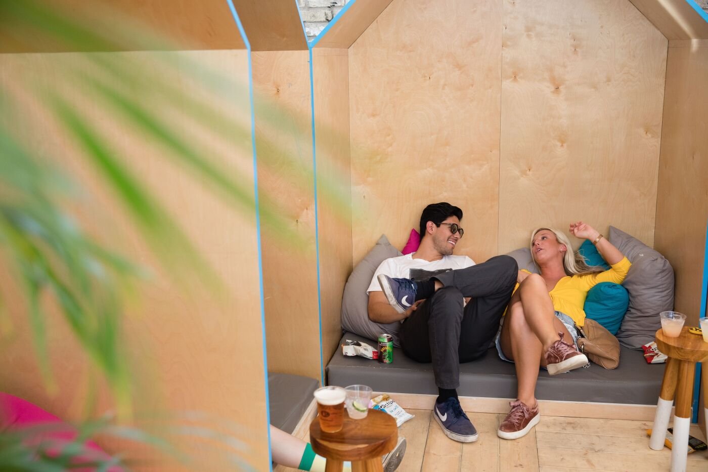 Les convives de Mashable House se rassemblent dans notre espace extérieur Good Vibes.