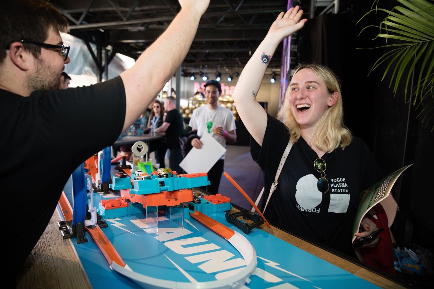 Les convives ont reçu pour mission de faire rouler des voitures Hot Wheels le long d’une piste spécialement conçue lors d’un défi inspiré du jeu de skee-ball.
